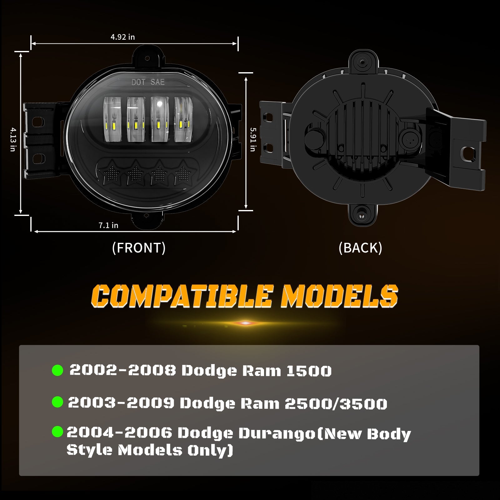 LED Fog Lights for Dodge 2002-2008 Ram 1500, 2003-2009 Ram 2500 3500 Pickup 2004-2006 Durango Upgrade and Modified 1 Pair Led Fog Lamp