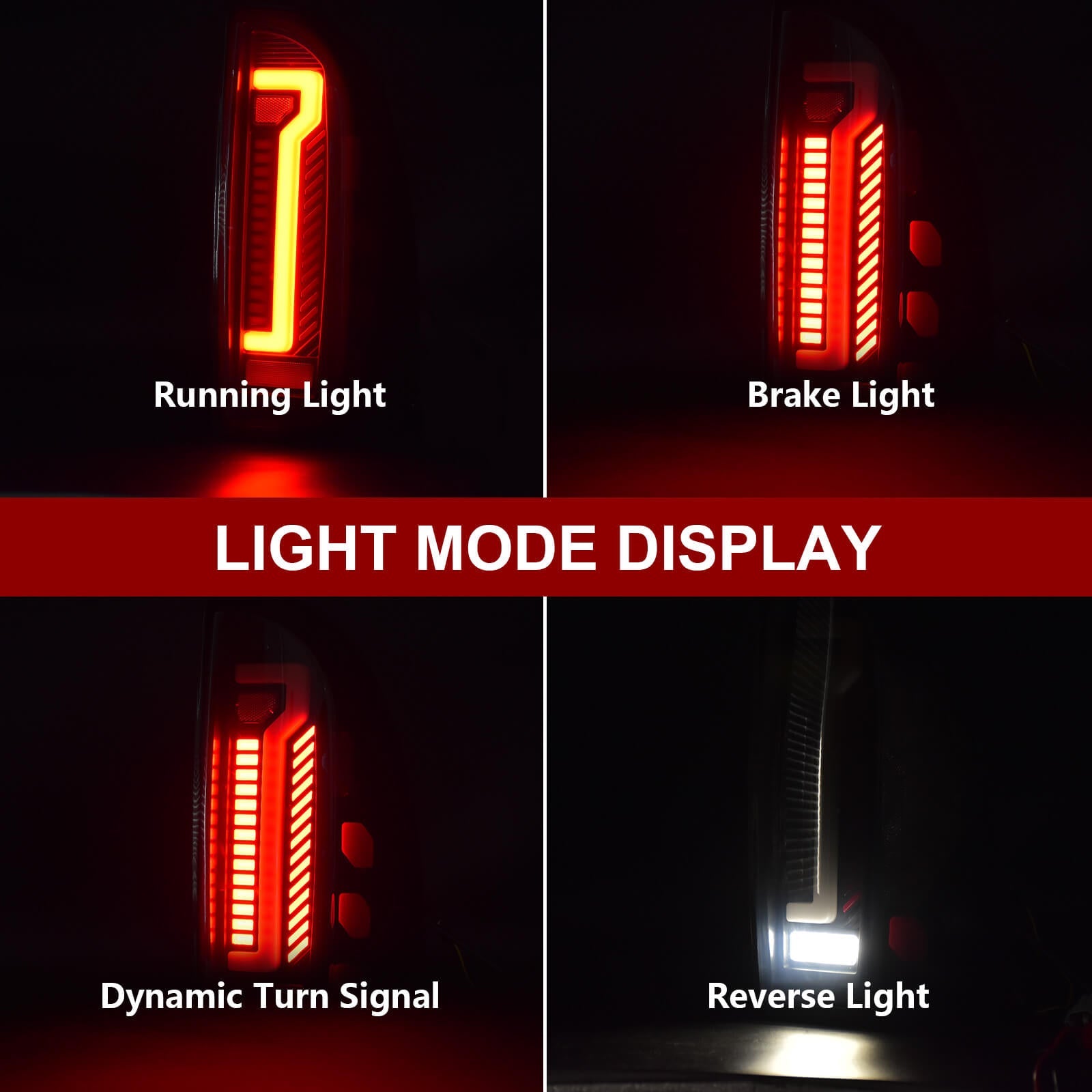 Lights Mode | Dynamic startup, dynamic sequential turn signal, brake light, parking lights, reverse light and side markers |