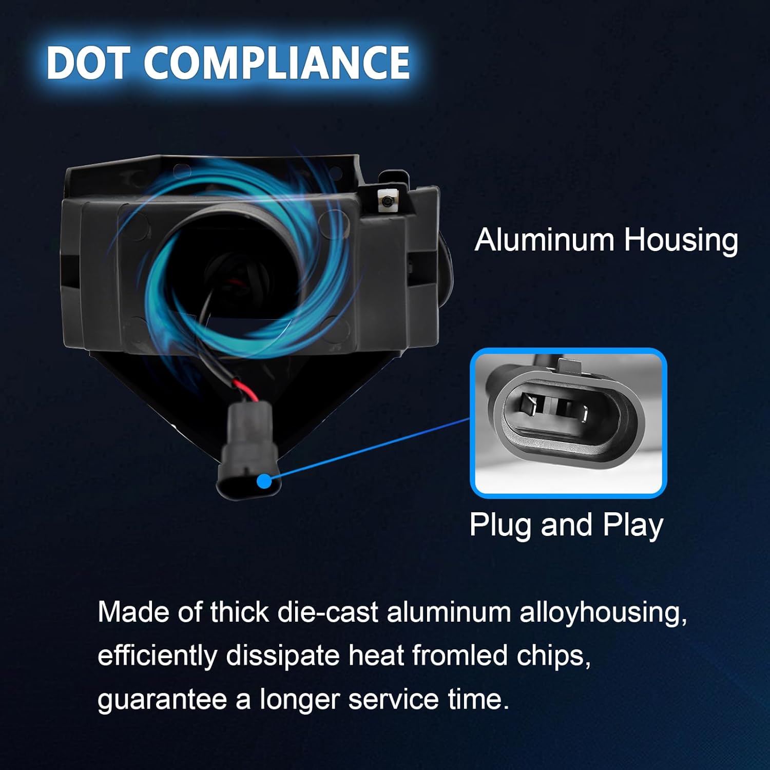 Advanced LED Technology: Our fog lights feature the newest LED chip design for ultra brightness, delivering a luminous flux of 2500LM and a color temperature of 6500K. Enjoy a lifespan of up to 55,000 hours with lighting that's whiter, brighter, and more penetrating than standard Halogen lamps