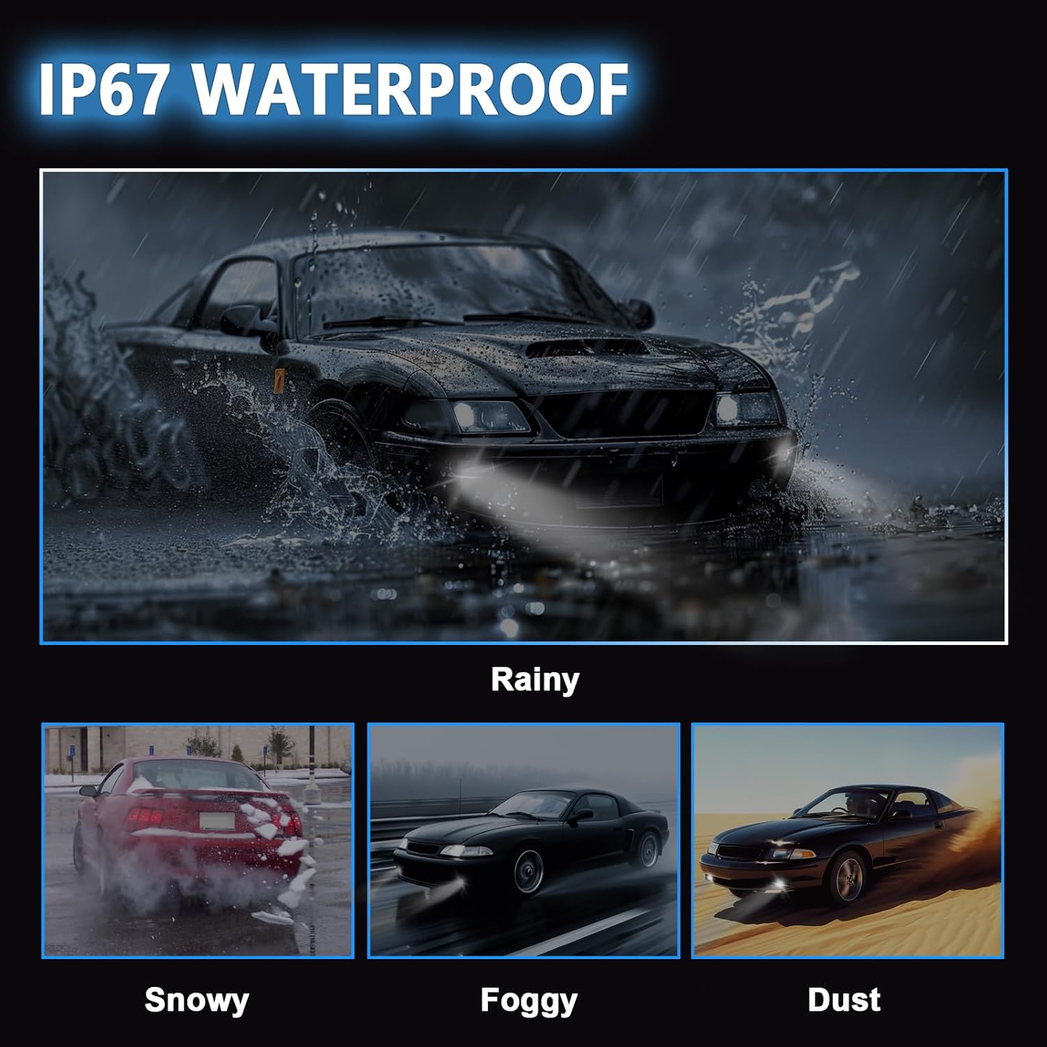 IP67 Waterproof: Designed to withstand harsh conditions, these fog lights feature an IP67 waterproof rating, a rugged casing, and a shatterproof PC lens. The superior construction provides complete protection against water, dust, and impact while ensuring excellent heat dissipation
