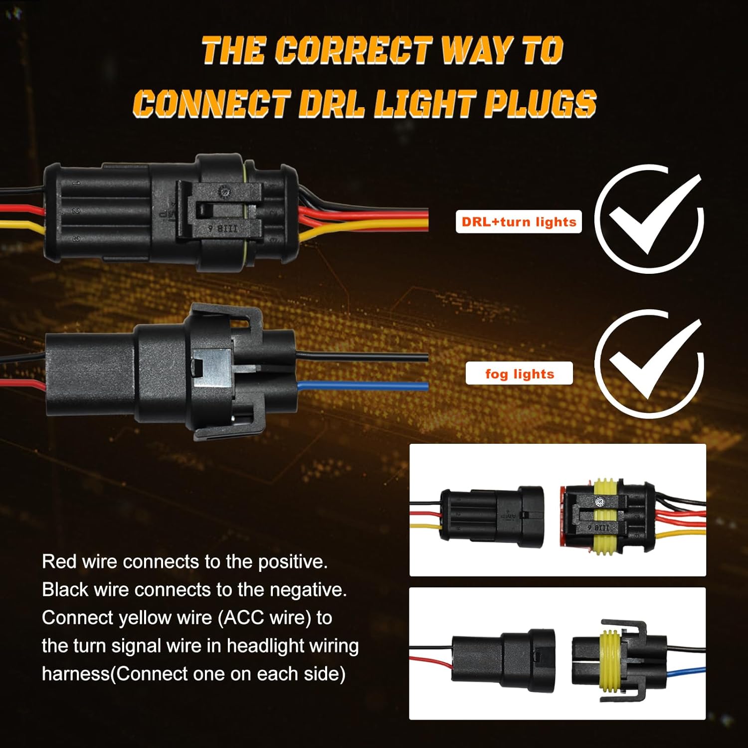 - Fog Lights Features:LED fog lights+Daytime running lights+amber turn signal lights.(Excluding fog lamp wiring harness and switch, only DRL wiring harness.)