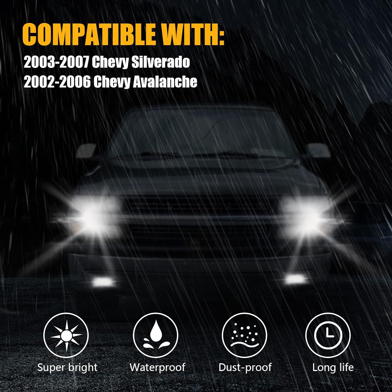 Fitment: LED fog lights for the 2003-2007 Chevy Silverado and 2002-2006 Avalanche, giving your car a new look. An adjustable screw at the top of the lights allows you to adjust the beam up or down to a proper height.
