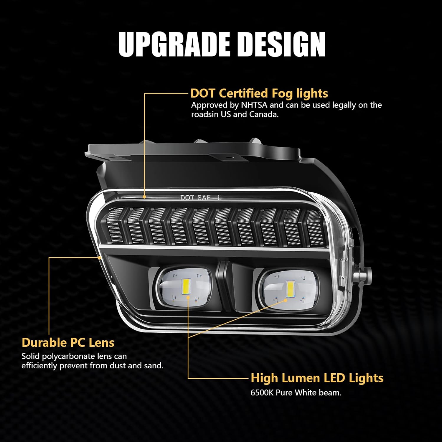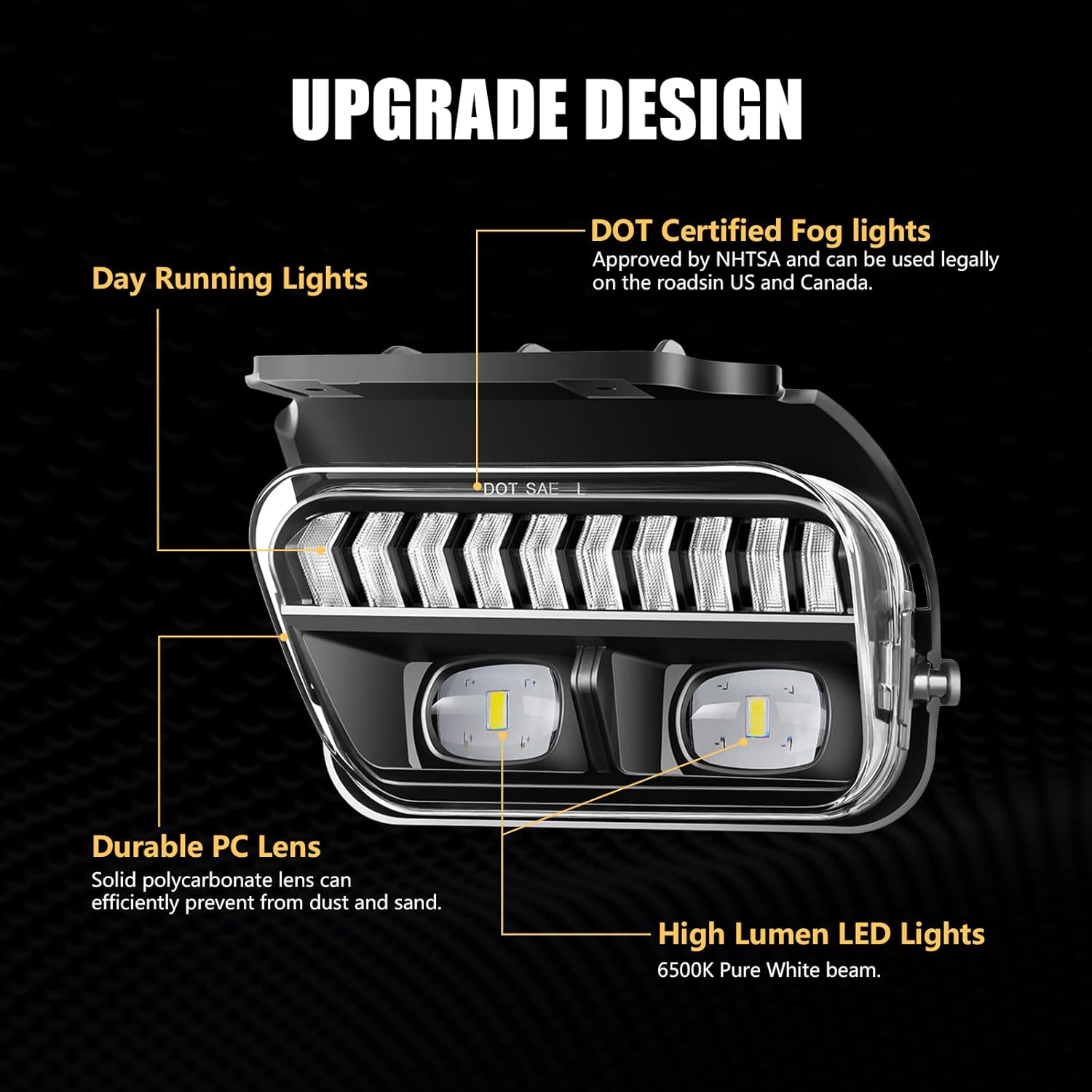 Chevy Silverado LED Fog Lights with Day Running Light: PC lenses, more durable than OEM glass lenses or other passing lamps. Fully sealed with an IP67 waterproof rating, rustproof, and shock-proof.