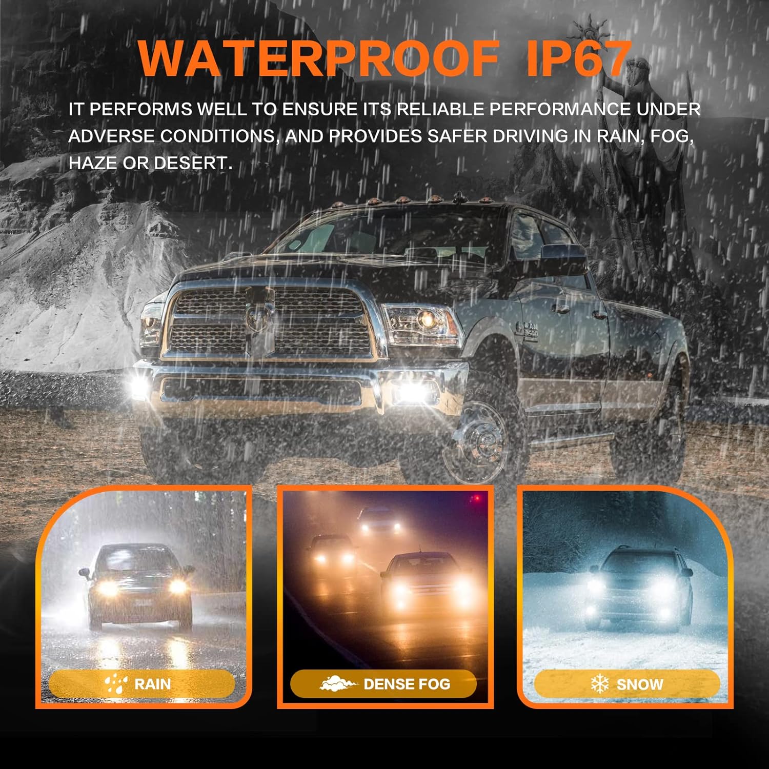 With PC lenses, the fog lights are stronger and more durable than OEM glass lenses or other passing lamps. Fully sealed, IP67 waterproof, rustproof, and shock-proof. They are made with cooling aluminum alloy heat sinks and solid heat conduction material.