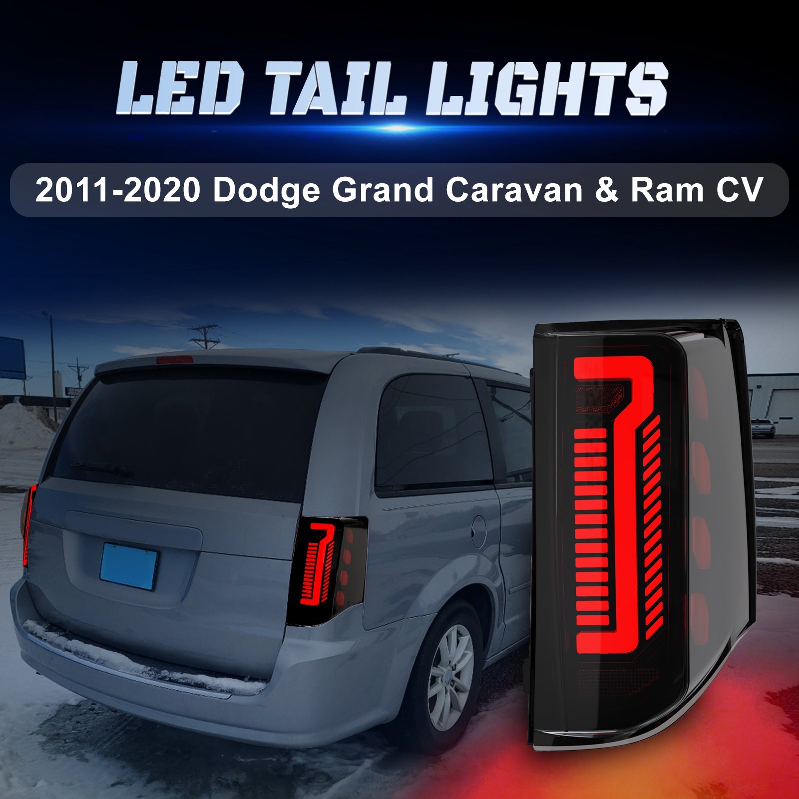Sequential LED Tail Light for 2011-2020 Dodge Grand Caravan Starting Animated Rear Light Assembly, Dynamic Turn Signal,Brake Light,Reverse Light Smoked